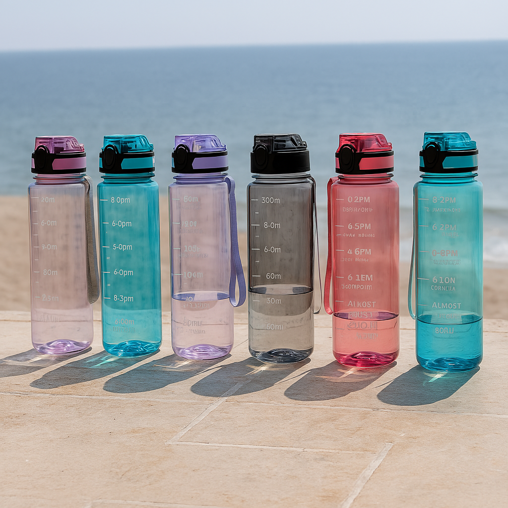- Made of Plastic, this water bottle is odourless and durable for your daily water drinking. The large water jug with 1 litre capacity is thick, durable and reusable, a healthy large water bottle for you and your family. The water bottle is drop-resistant and not easy to break. Perfect choice for fitness, gym, running, hiking, cycling, camping, etc