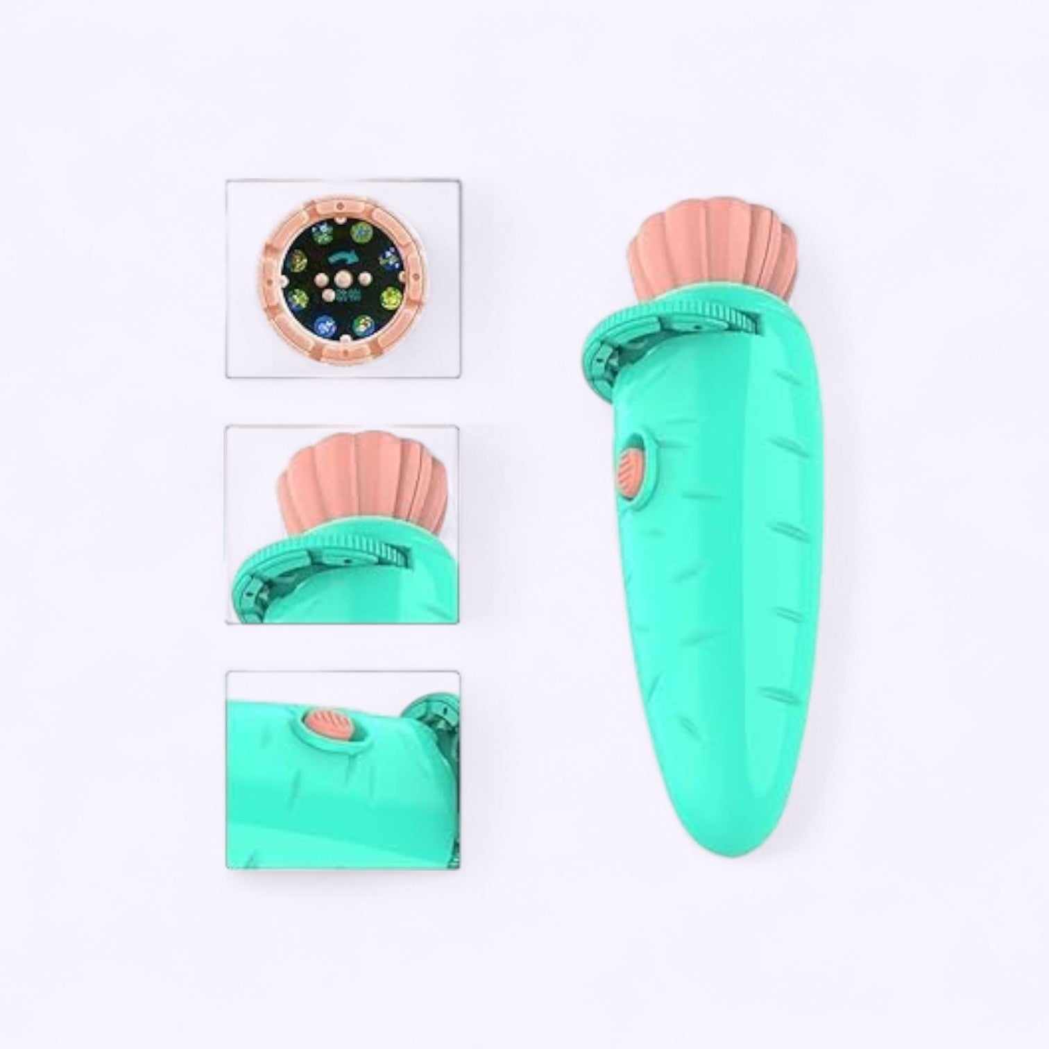 UK-0949 2-in-1 Carrot Shape Projector Flashlight with 24 Animals Images Toy