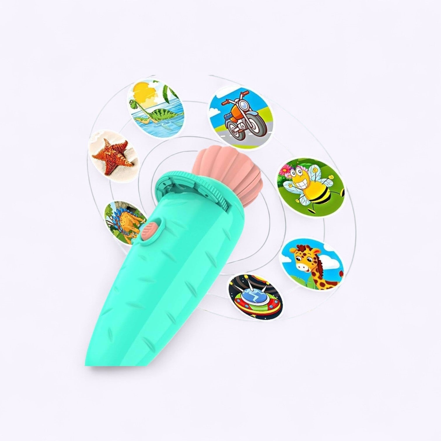 - 2-in-1 Design: Functions as both a flashlight and an image projector for double the fun.