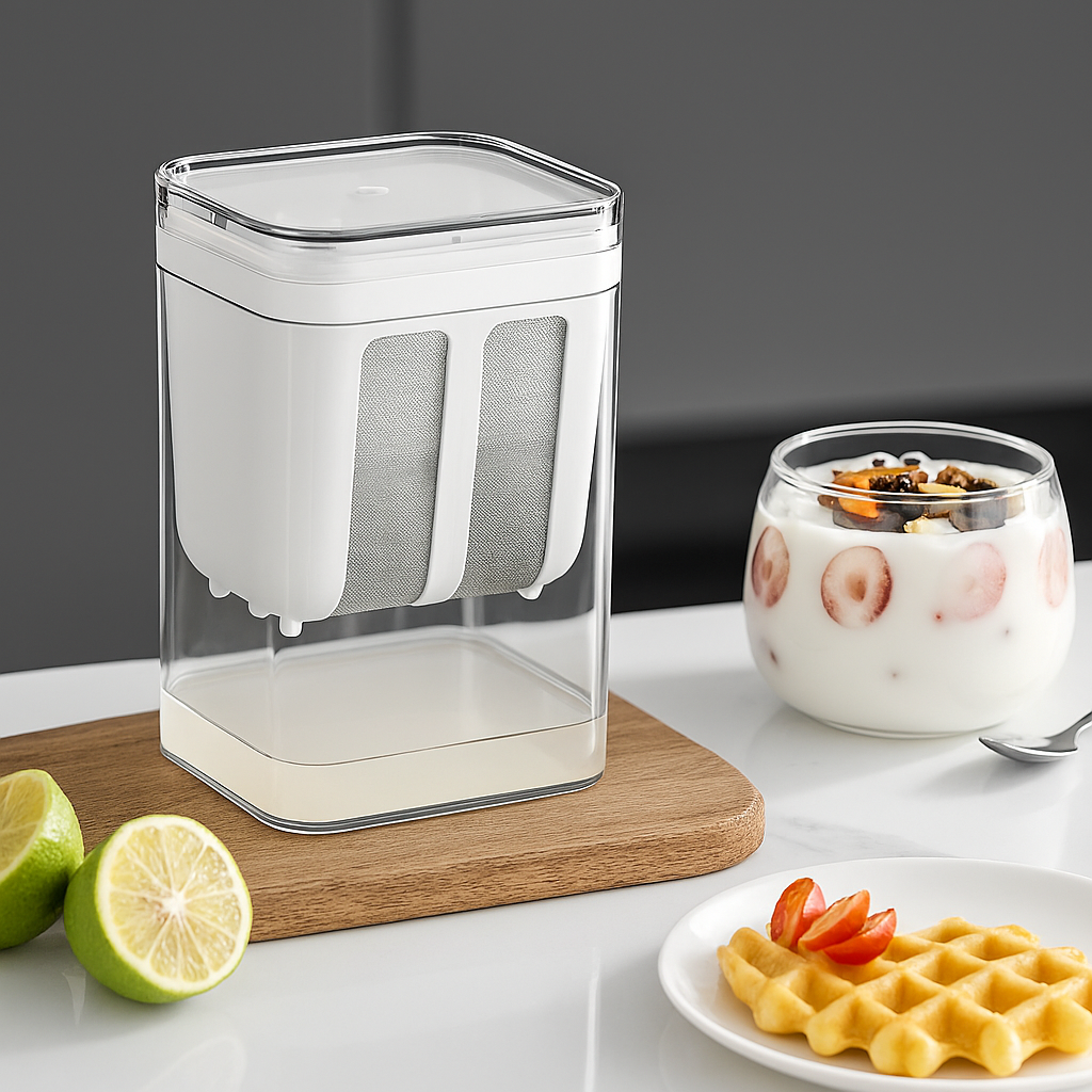 - š” Safe, Durable, and Efficient Materials: The BPA-free PET canister and rust-free stainless steel fine mesh ensure chemical-free, long-lasting use, while the fine mesh guarantees smooth straining for thick, creamy yogurt and hung curd without any lumps.