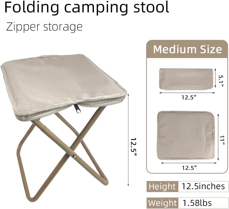 UK-0963 Folding Stool, Mini Outdoor Camping Stool, Portable Small Foldable Lightweight Hunting Seat with Zippered Carrying Bag, Folding Slacker Chairs for Fishing Travelling Picnics