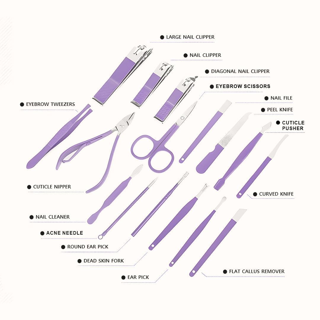 - For Hand Care Child Nail Clipper: For kids trimming finger nails Nail Cleaner: For cleaning dirt in nail Nail File: For making nails smooth Dead Skin Fork: For removing callus, dead skin, etc Peeling Knife: For removing scrape nail polish Cuticle Nipper: For trimming cuticles