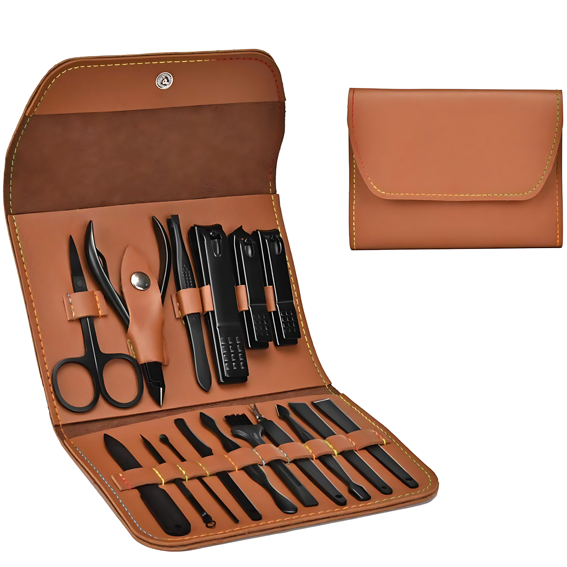 - Portable and Convenient: Encased in a luxurious, travel-friendly leather case, our manicure set is designed for on-the-go grooming. Its compact and lightweight design ensures easy portability, letting you maintain your grooming routine wherever you are.