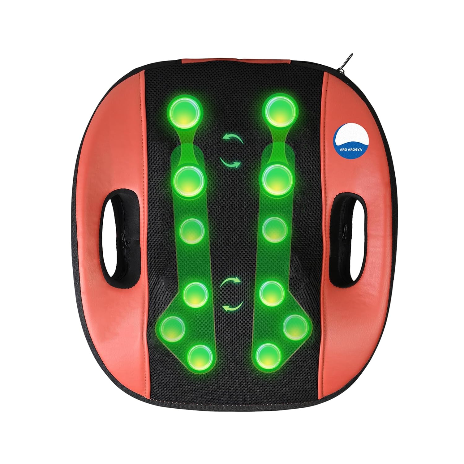 - 👍{𝐅𝐄𝐀𝐓𝐔𝐑𝐄𝐒} The Arogya Blue Idea Cushion Massager's user-friendly design, small size and lightweight hollow design on both sides also make it easy to carry. 12 rubbing balls that provide a 360-degree up-to-down massage help relieve stiff muscle tension through kneading or rolling massage and promote relaxation in the back, neck, shoulders and other areas.