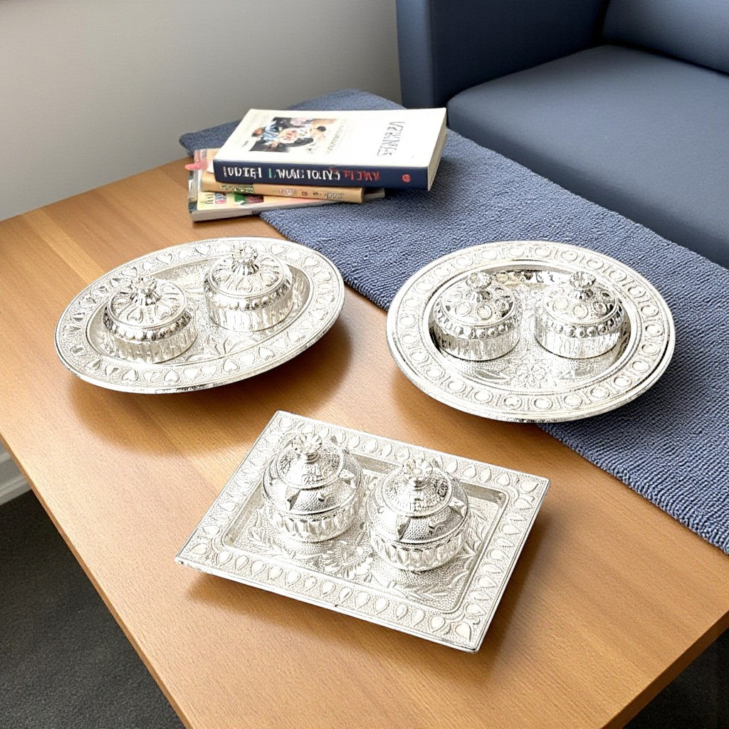 UK-1000 Silver Plated Haldi Kumkum Holder with Plate for Home Decorative Occasion for Festival (1PC MIX DESIGN)
