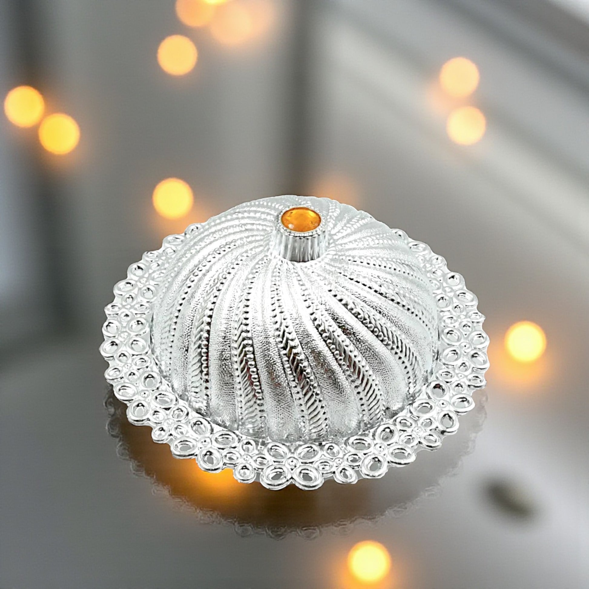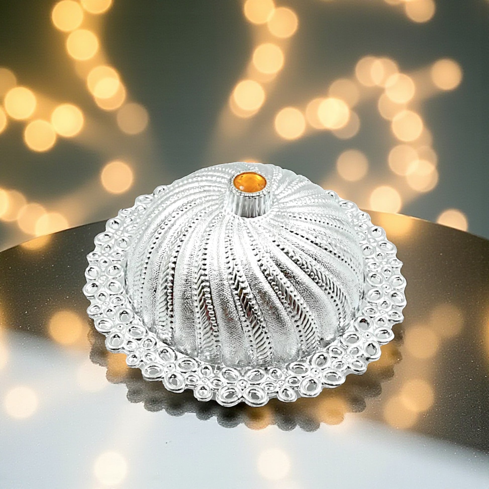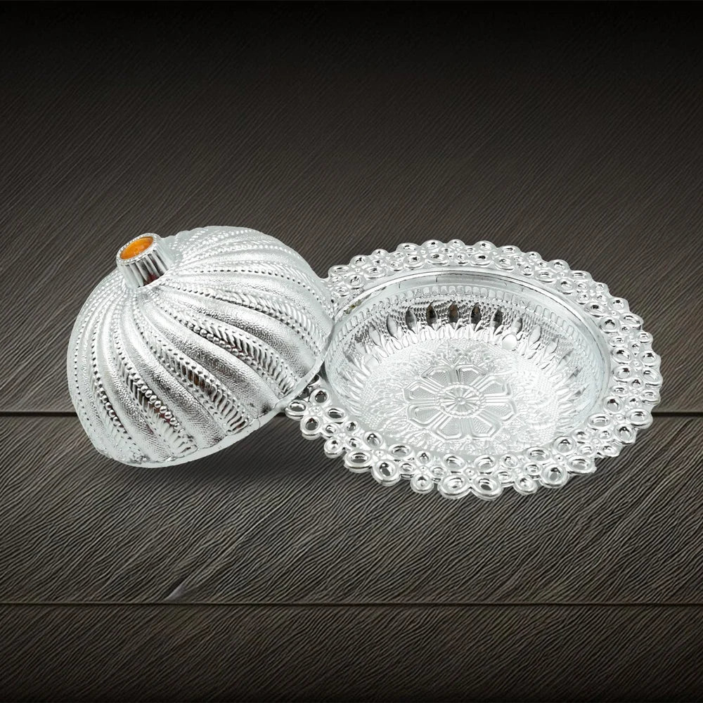 UK-1004 Round Silver Dry Fruit Set Box With Lid, Mukhvas Storage, Serving Box,Dry Fruit Box For Kitchen Storage Home Decor Best Gift For Birthday (1 Pc)