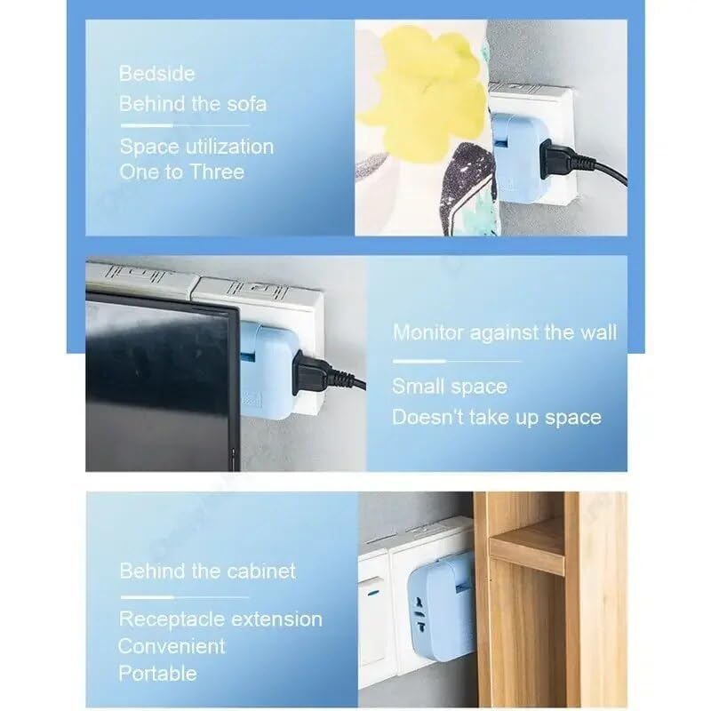 UK-1052 3-in-1 Rotatable Plug Adapter – 180° Extension with Foldable Multi-Socket, Mini Slim Wireless Outlet Converter, 2-Pin Rotate Plug, Compact Travel-Friendly Design (Multicolor)