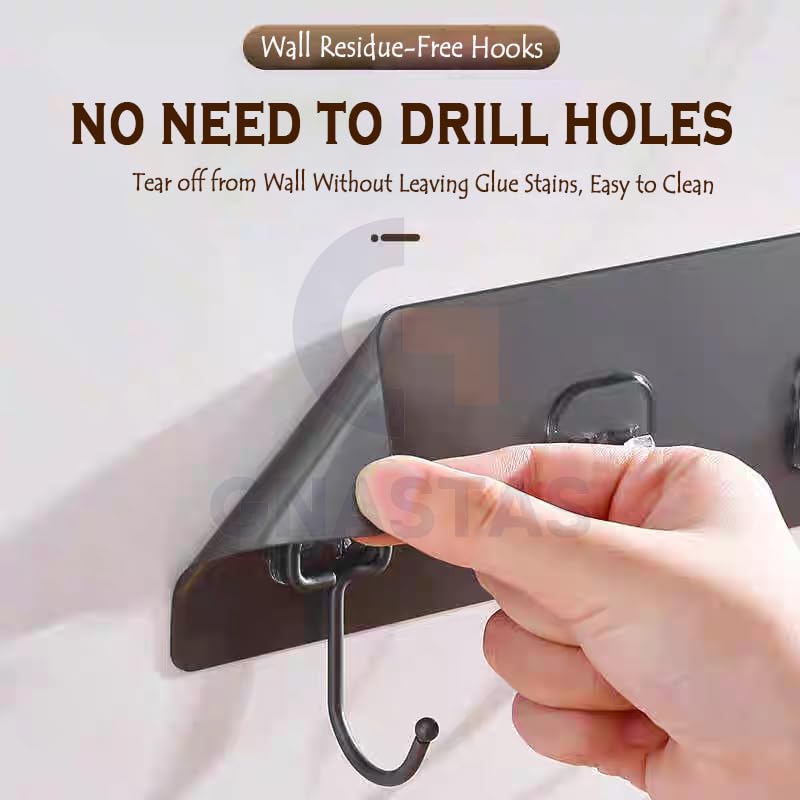 - No Drilling – Easy Installation – Equipped with powerful adhesive backing, this wall hook hanger sticks firmly to smooth surfaces like tiles, glass, wood, and metal – no tools or screws required.