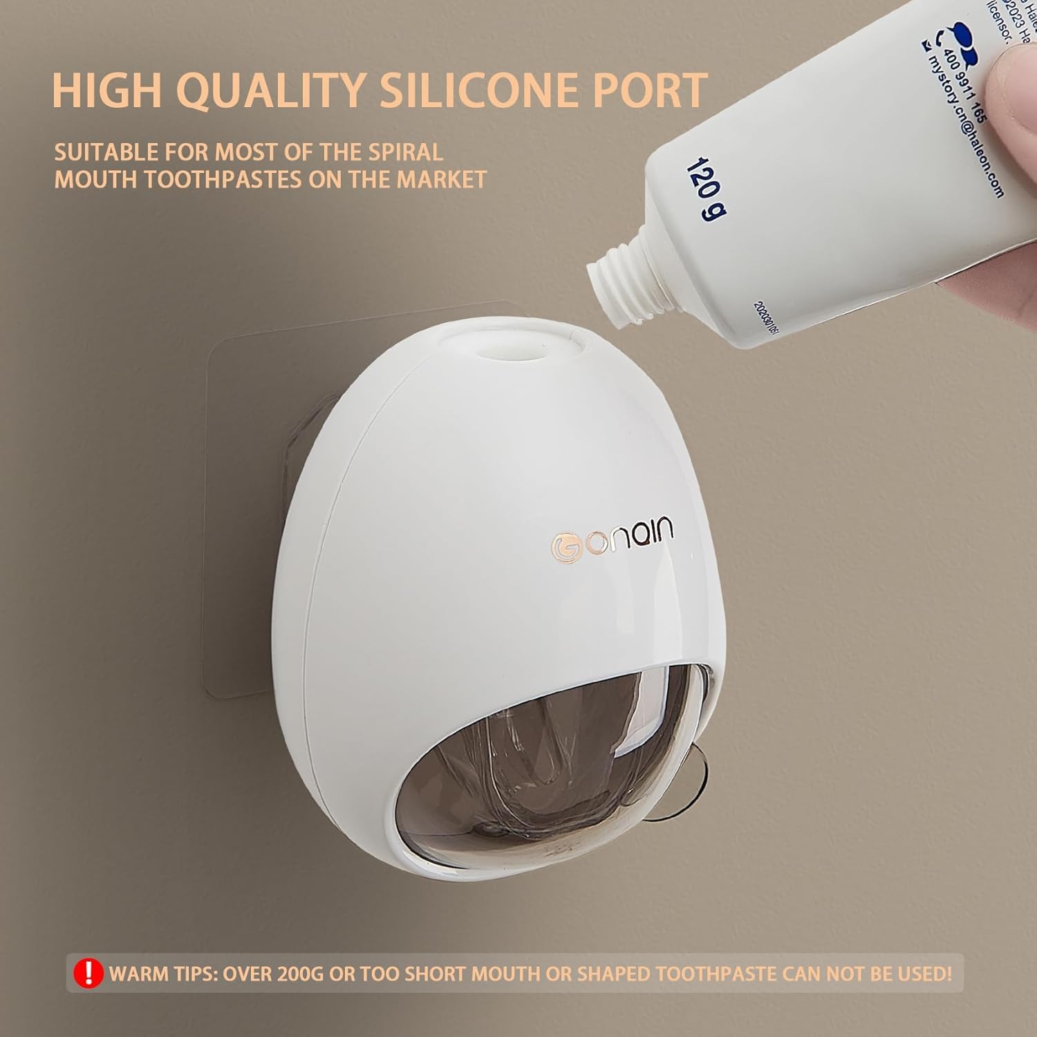 - AUTOMATIC DISPENSING: Wall-mounted toothpaste dispenser that automatically squeezes out the perfect amount of toothpaste with a simple push
